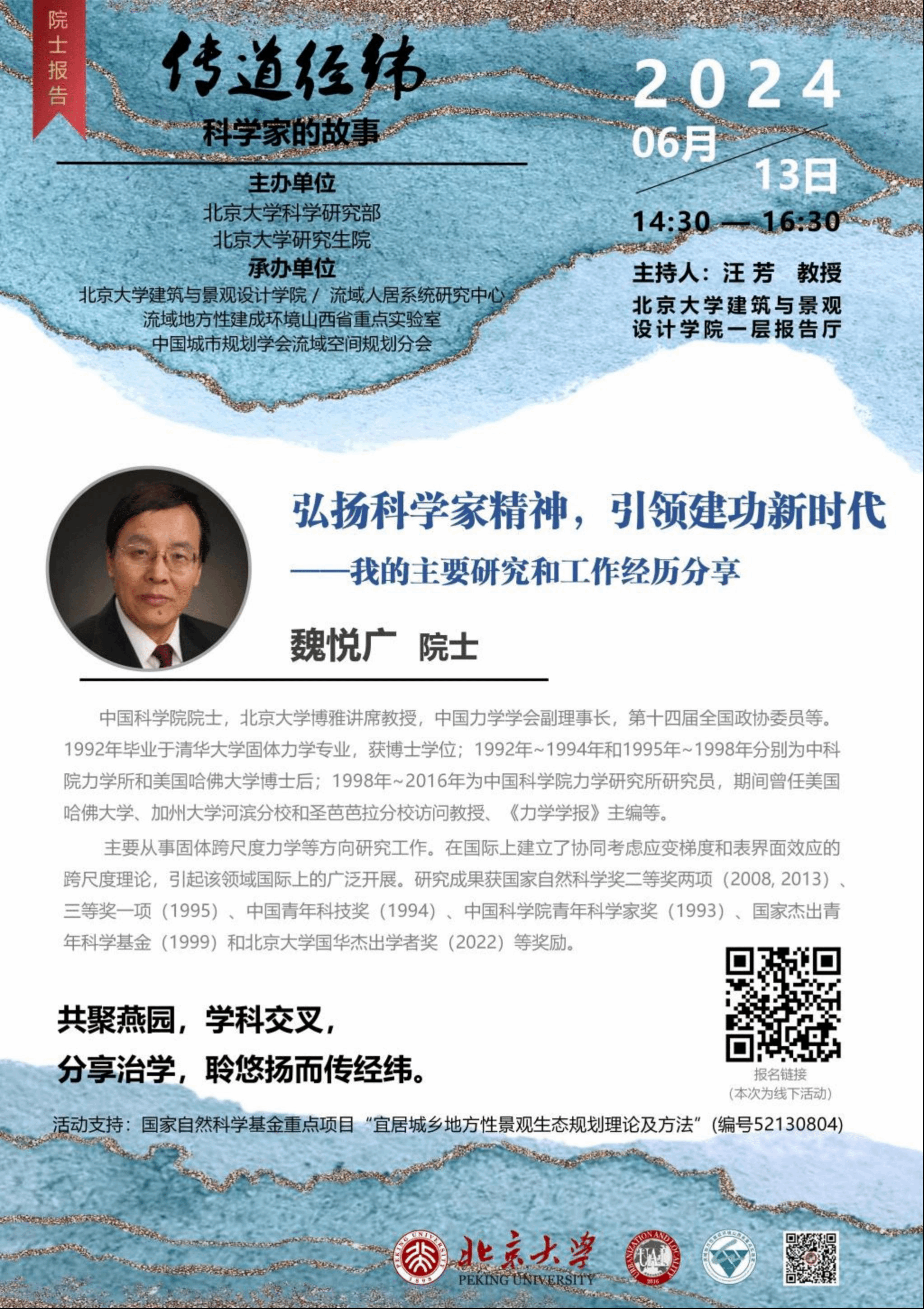 由北京大学科学研究部、北京大学研究生院主办的“传道经纬:科学家的故事”系列讲座,邀请在各自领域取得重要成就的学者,来分享自己的学术经历和成长之路,展示科研工作的价值和挑战,带领青年学子领略不同学科的魅力和思想。欢迎共同感受学科交叉的无限可能,走进科学家的治学历程。