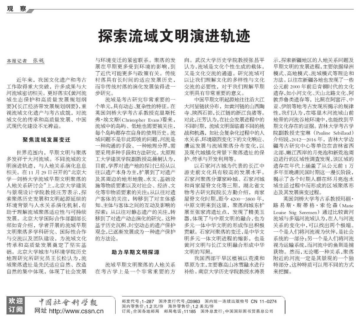 研讨会积极响应中央提出的“推进文化遗产的系统保护,延续历史文脉,坚定文化自信”的文化目标,邀请国内外多位专家进行主旨报告与主题报告,就流域聚落人地关系演化展开学术交流。主题既涵盖人地关系、人水关系的理论研究,也涉及黄河流域、长江流域、多瑙河流域、大乌斯河、中国西部干旱区、嫩江流域等区域及跨区域的史前文化发展演进过程,同时包括对阿克塔拉遗址群、珠三角历史文化街区、鼓浪屿殖民遗产等具体遗产案例地的分析;时间尺度上,不仅涉及史前时期的考古分析,也从理念与数字化技术层面探讨了当今与未来流域聚落遗产保护的适应性发展路径。研讨会收到热烈反响,《中国社会科学报》12月5日以《探索流域文明演进轨迹》为题报道了本次会议。
