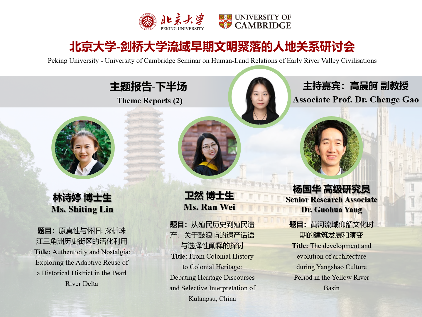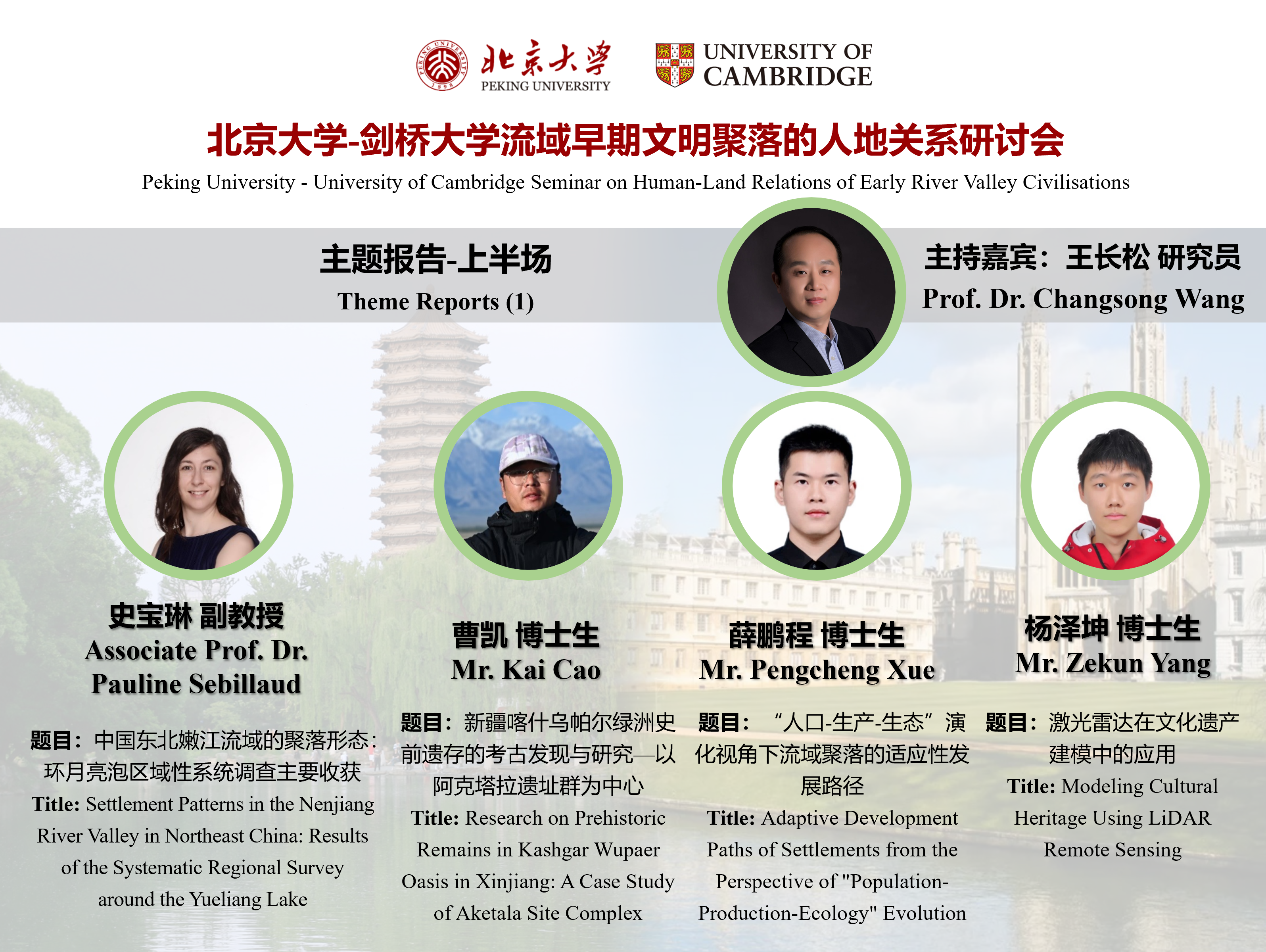 为开展关于流域聚落人地关系演化的多学科、国际性学术合作研讨,推动流域聚落可持续发展与流域遗产整体保护的国际合作、学术交流、人才培养,2022年11月29日,“北京大学-剑桥大学流域早期文明聚落的人地关系研讨会”在云端举行。研讨会是2022年度“北京大学国际战略合作伙伴基金”资助项目,由建筑与景观设计学院汪芳教授、地球与空间科学学院遥感所郭庆华教授共同申请;主办单位为北京大学建筑与景观设计学院,合办单位为剑桥大学考古系。继2021年“北京大学-剑桥大学流域文化遗产研讨会”之后,两校再次就此开展讨论和交流,并且有南京大学、武汉大学、吉林大学、湖北省文物考古研究院、太原理工大学、伦敦政治经济学院等更多的院校加入进来。