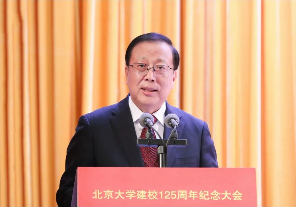 郝平在讲话中回顾了120周年校庆前夕习近平总书记在北大师生座谈会上的重要讲话精神和总书记对北大师生提出的殷切希望。五年来,北大以习近平总书记重要讲话精神作为根本遵循,全面贯彻党的教育方针,以蓬勃的青春朝气、锐意进取的创新精神、扎根中国大地的定力、胸怀天下的视野,扎实推进学校各项事业高质量发展,在推动国家发展、民族复兴、文明进步方面向党和人民交出了合格答卷。