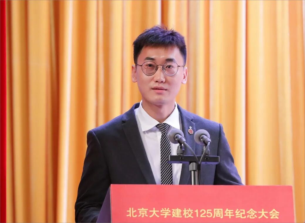 校友代表、1991级地球物理系本科生,中国国家天文台副台长、首席研究员刘继峰回顾了青春飞扬的校园岁月,讲述了求学从教经历。他说,坚守理想、精益求精是母校赋予自己的宝贵财富,也激励着他不断追求科学真理,在推动国家天文学事业发展、教书育人中不懈努力并乐在其中。北大人将秉承母校的优良传统和校风,砥砺奋进,为民族的未来贡献自己的力量。