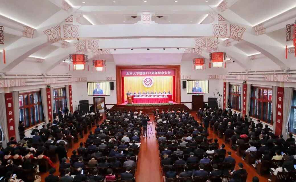 2023年5月4日上午,北京大学建校125周年纪念大会在办公楼礼堂举行。有关领导、嘉宾、社会各界代表与北大师生校友代表欢聚一堂,共同回顾一个多世纪以来特别是近五年来学校发展历程,展望建设中国特色世界一流大学的美好前景。