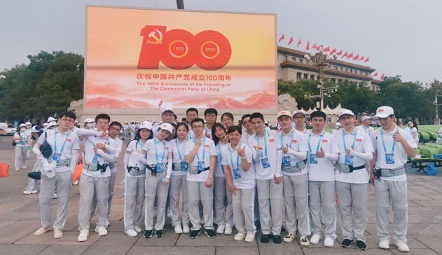 从小家到大家,刘钊也作为一名志愿者,为国家多项重大活动顺利举办保驾护航。2021年,他以青年党员志愿者的身份,参与到庆祝建党100周年大会中。两个月有余、近一百小时的服务工作,是刘钊作为“幕后英雄”,在平凡岗位上为党带来青春的礼赞。今年,刘钊将这份心底的炙热传递给更多的人,成为一名身穿“天霁蓝”的冬奥会志愿者。