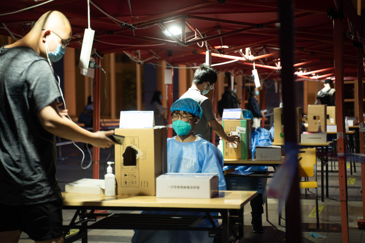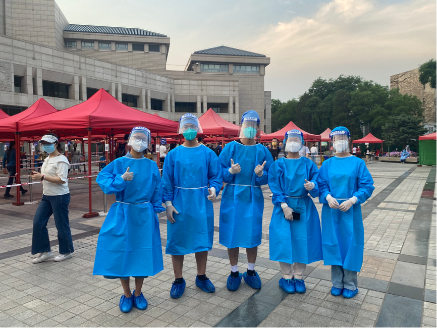 刘钊在百讲参加校园核酸检测的志愿服务工作