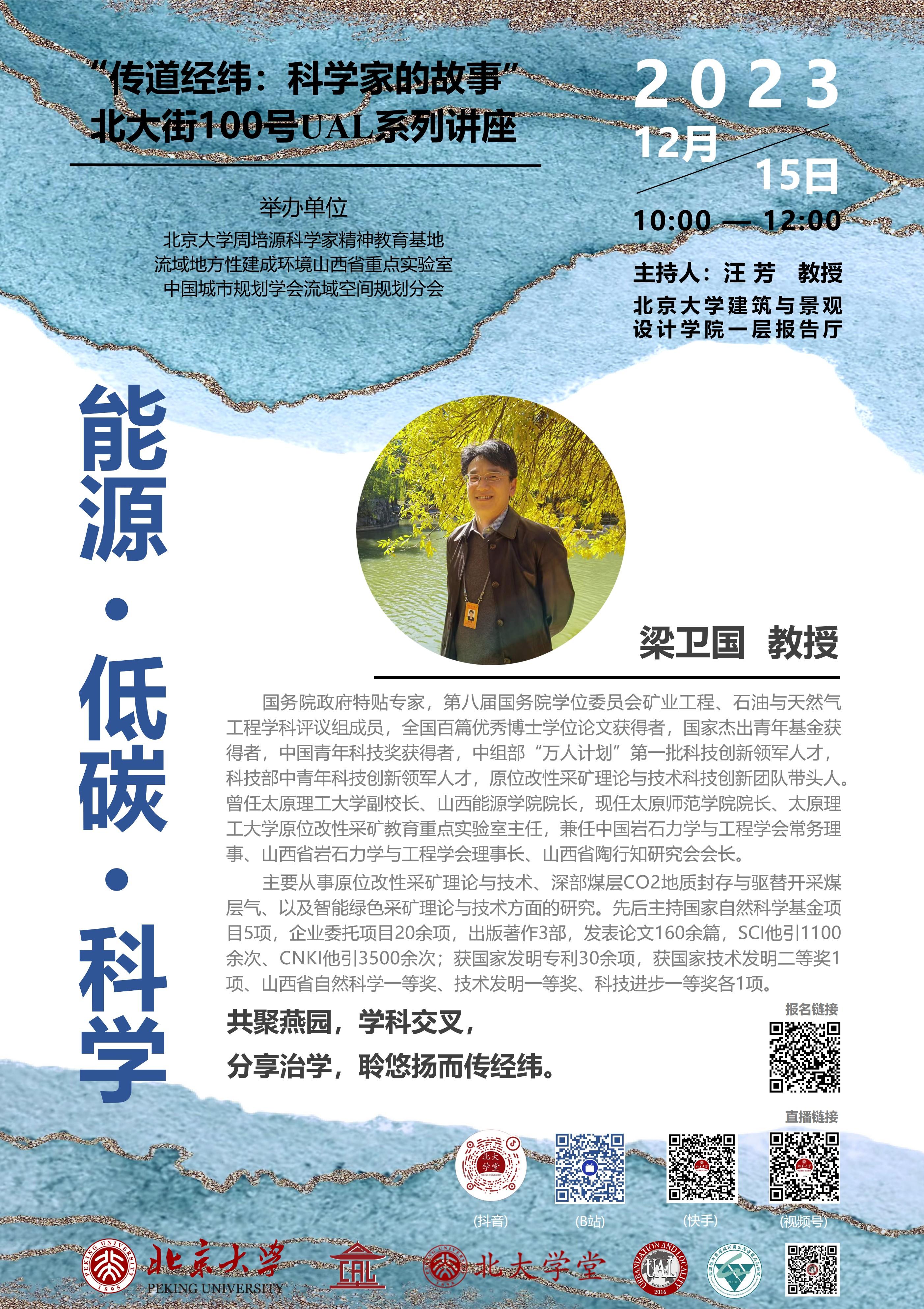 “传道经纬:科学家的故事”北大街100号UAL系列讲座,邀请在各自领域取得重要成就的学者,来分享自己的学术经历和成长之路,展示科研工作的价值和挑战,带领青年学子领略不同学科的魅力和思想。欢迎共同感受学科交叉的无限可能,走进科学家的治学历程。