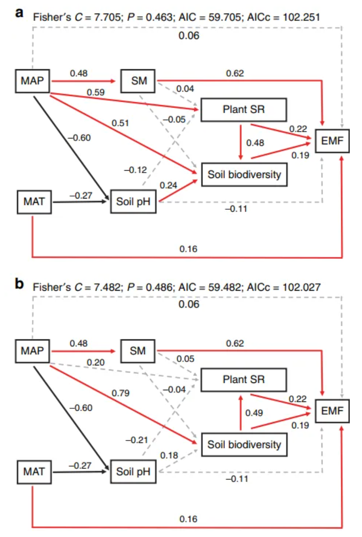 图 气候、土壤和生物多样性结构方程模型预测生态系统多功能