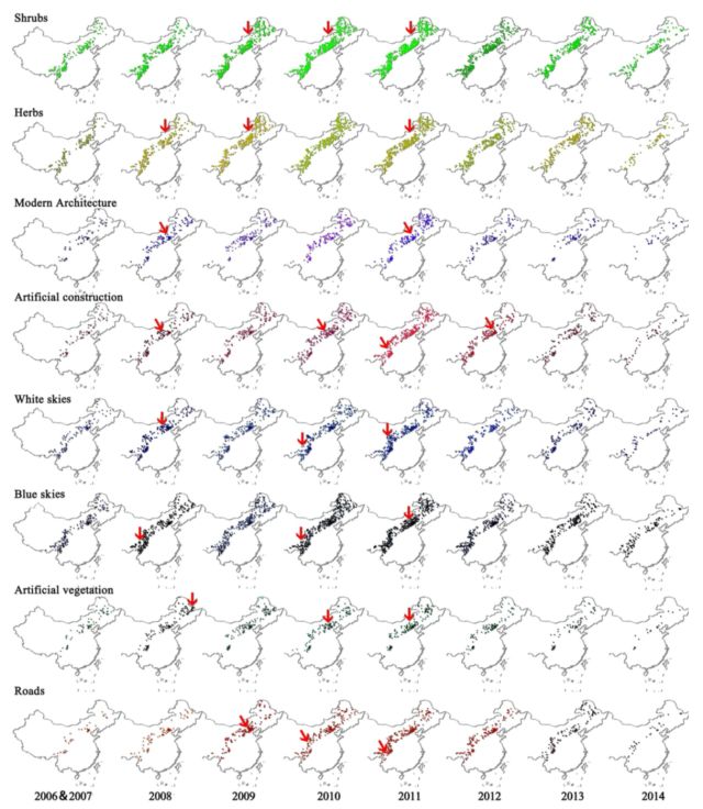 研究中选取行政跨度广泛、文化景观更迭的典型区域——农牧交错带为研究对象,采集Panoramio网站上在农牧交错带范围内所有的照片及其有效信息,对其内容进行分析,包括地名、地理足迹、上传者信息等,尝试从主体认知层面展现农牧交错带的空间和意象;同时,内容分析和空间分析相结合,将采集的信息进行编码,进而获得地方性元素集合,通过分析不同要素出现的频次和频率,从地方性的角度深入挖掘农牧交错带与其他地区相比所具有的显著特征,及其地方性在整体上的空间分布格局、时间维度上的演替历程;进一步地,在理解农牧交错带人地关系的基础上,结合各省域的土地利用政策,分析二者的互动关系,为土地利用提供借鉴。