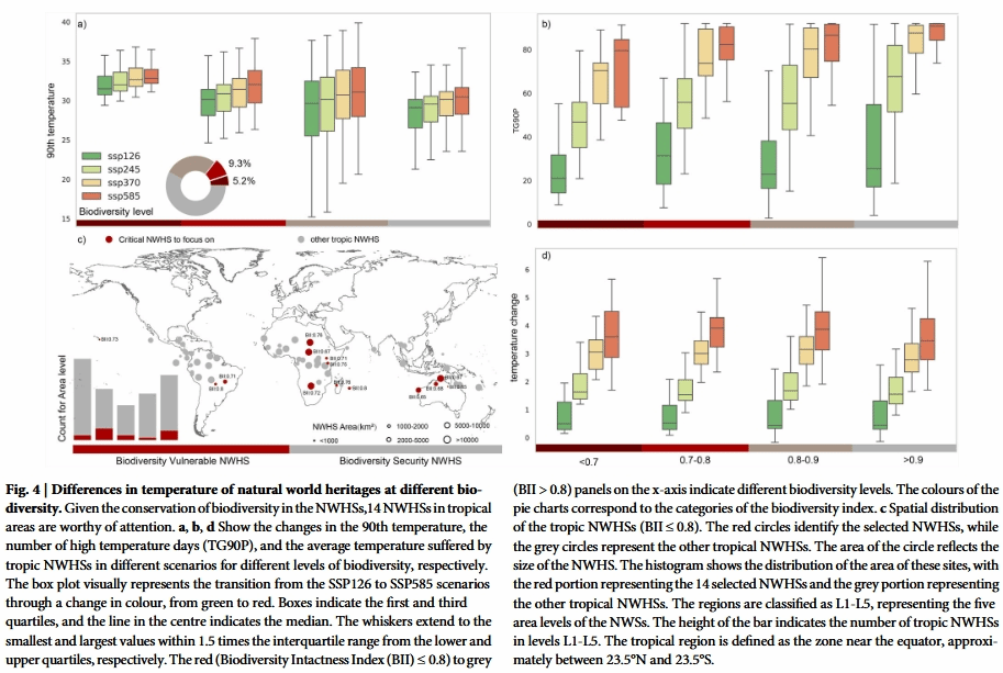 文章信息:Chen, G., Fu, B., Jiang, Y., Suo, X., Lai, Y., Chen, Z., Li, J., Li, L., Lu, M., Tang, Y., Guo, H., Yang, R. & Li, B. (2024). Natural world heritage sites are at risk from climate change globally. Communications Earth & Environment, 5, 760. https://doi.org/10.1038/s43247-024-01933-3