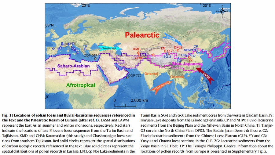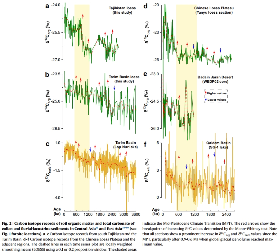 Abstract: Population expansions and contractions out of and into Africa since the early Pleistocene have influenced the course of human evolution. While local- and regional-scale investigations have provided insights into the drivers of Eurasian hominin dispersals, a continental-scale and integrated study of homininenvironmental interactions across Palearctic Eurasia has been lacking. Here, we report high-resolution (up to ∼5-10 kyr sample interval) carbon isotope time series of loess deposits in Central Asia and northwest China, a region dominated by westerly winds, providing unique paleoecological and paleoclimatic records for over ~3.6 Ma. These data, combined with further syntheses of Pleistocene paleontological and archaeological records and spatiotemporal distributions of Eurasian eolian deposits and river terraces, demonstrate a pronounced transformation of landscapes around the Mid-Pleistocene Climate Transition. Increased climate amplitude and aridity fluctuations over this period led to the widespread formation of more open habitats, river terraces, and desert-loess landscapes, pushing hominins to range more widely and find solutions to increasingly challenging environments. Mid-Pleistocene climatic and ecological transitions, and the formation of modern desert and loess landscapes and river networks, emerge as critical events during the dispersal of early hominins in Palearctic Eurasia.
