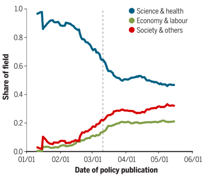 COVID-19 相关的政策文件很大程度上援引最新的、经过同行评审的和高影响的科学论据。