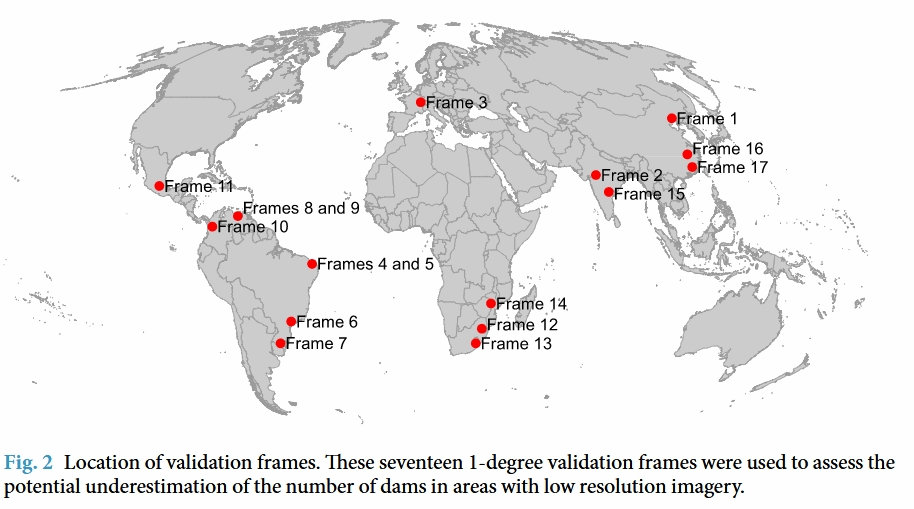02 验证框架的位置。这 17 个 1 度验证框架用于评估低分辨率图像区域中水坝数量的潜在低估情况
