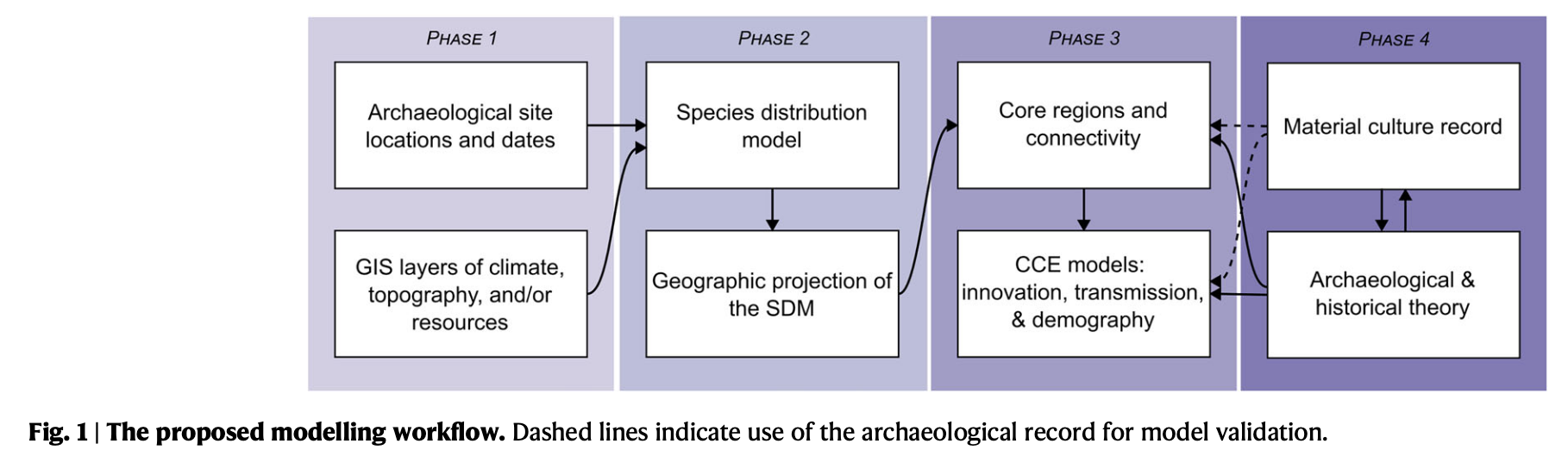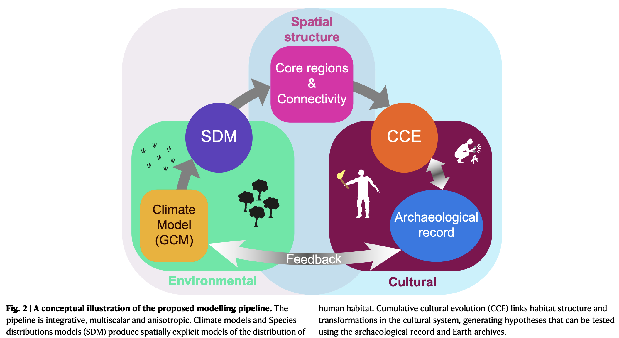 Abstract: Cultural systems play an important role in shaping the interactions between humans and the environment, and are in turn shaped by these interactions. However, at present, cultural systems are poorly integrated into the models used by climate scientists to study the interaction of natural and anthropogenic processes (i.e. Earth systems models) due to pragmatic and conceptual barriers. In this Perspective, we demonstrate how the archaeology of climate change, an interdisciplinary field that uses the archaeological record to explore human-environment interactions, is uniquely placed to overcome these barriers. We use concepts drawn from climate science and evolutionary anthropology to show how complex systems modeling that focuses on the spatial structure of the environment and its impact on demographic variables, social networks and cultural evolution, can bridge the gap between large-scale climate processes and local-scale social processes. The result is a blueprint for the design of integrative models that produce testable hypotheses about the impact of climate change on human systems.
