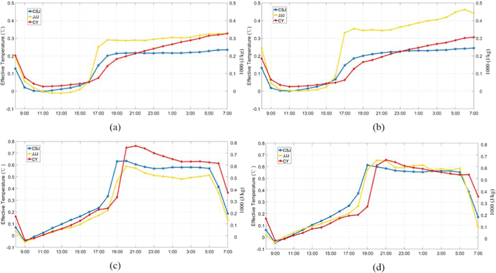 图 1月(a)的UL2UBL和1月(b)的IL2UBL的昼夜温度变化,7月(c)的DL2UBL和IL2UBL在7月(d).的变化